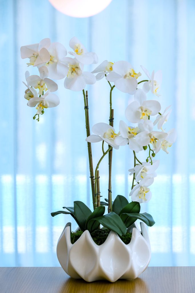 Our Artificial Orchid is a stunning decorative piece that brings the elegance of nature into any space. With lifelike petals, vibrant preserved moss, and a sleek ceramic vase, it offers a touch of sophistication and freshness without maintenance. Ideal for adding charm and beauty to your home or office decor.